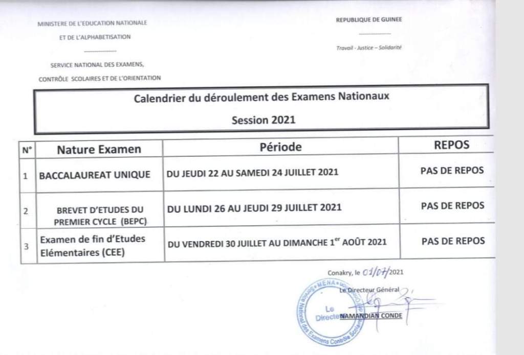 A suite de cette injonction du Chef de l’Etat, le ministère de l’éducation nationale et de l’Alphabétisation (MEN-A) a proposé un calendrier en conseil interministériel le mardi 29 juin avant d’être finalement entériné ce jeudi 1er juillet 2021.