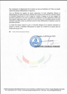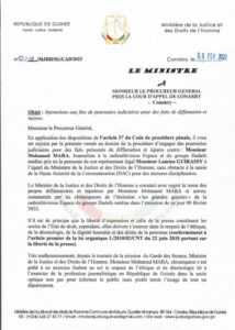 Guinée : Le ministre Charles Wright ordonne des poursuites contre le journaliste Mohamed Mara (Courrier) à la uneMédia By Samory On Fév 10, 2023 Share FacebookTwitterWhatsAppEmailFacebook MessengerLinkedinTelegramPrint Share FacebookTwitterWhatsAppEmailFacebook MessengerLinkedinTelegramPrint