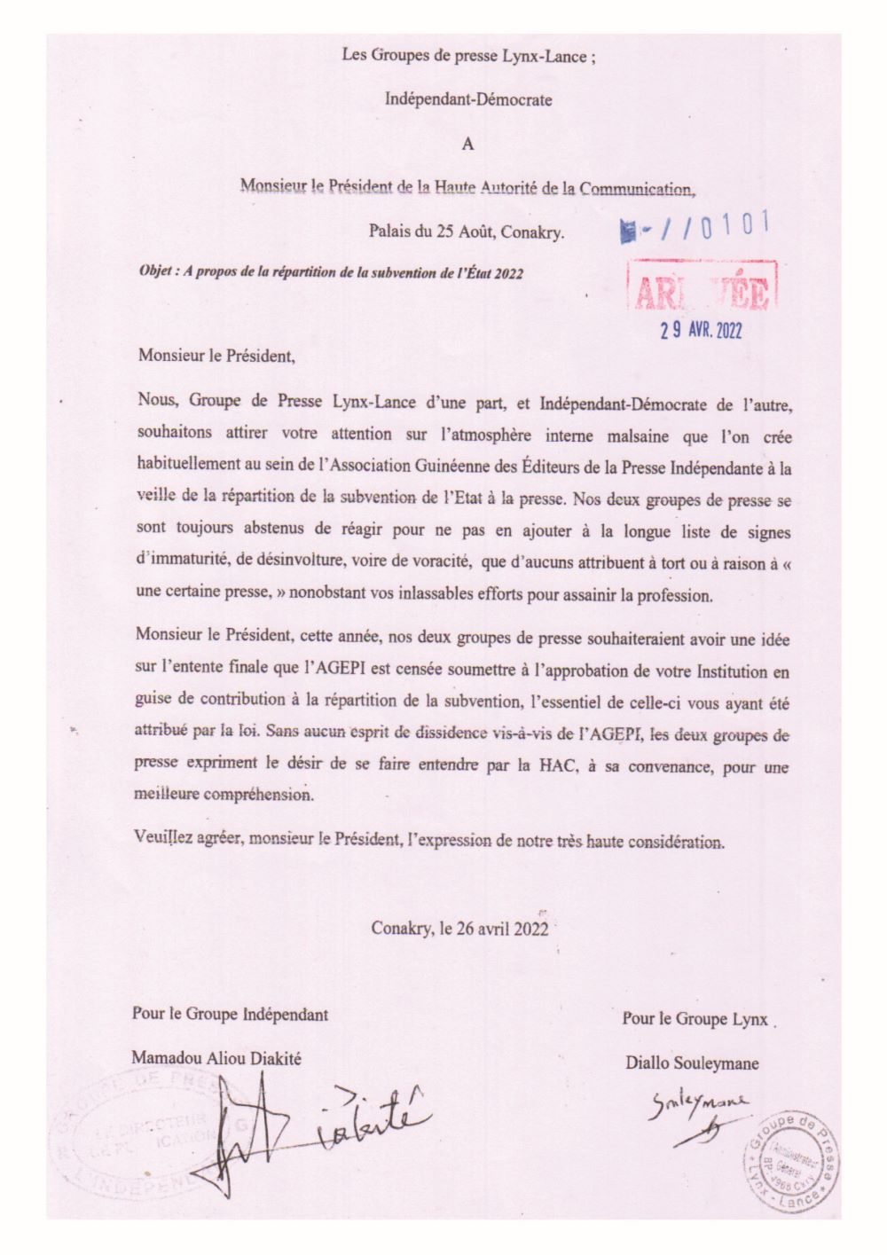 - Le Fait : Un chèque de 100 000 000 GNF (Cent millions de francs guinéens) destiné à l’ensemble de la presse écrite a été rejeté unilatéralement par l’ancienne Présidente, sans consultation ni justification.