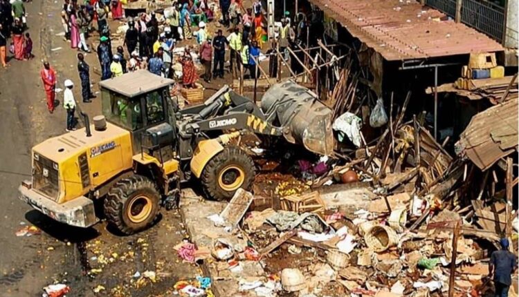 Le génie militaire a été mobilisé pour démolir cabarets, kiosques, boutiques et étals installés sur les emprises publiques. Parmi les principaux sites concernés figurent le Marché de Madina-plus grand centre de négoce du pays-, ainsi que les marchés d’Enco 5 et du KM 36.
